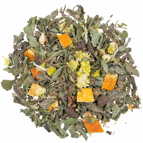 Zutaten:Nanaminze, Pfefferminze, Orangenschalen, Zichorienwurzel geröstet, Ingwerstücke, Katzenpfötchenblüten, Kaktusblüten